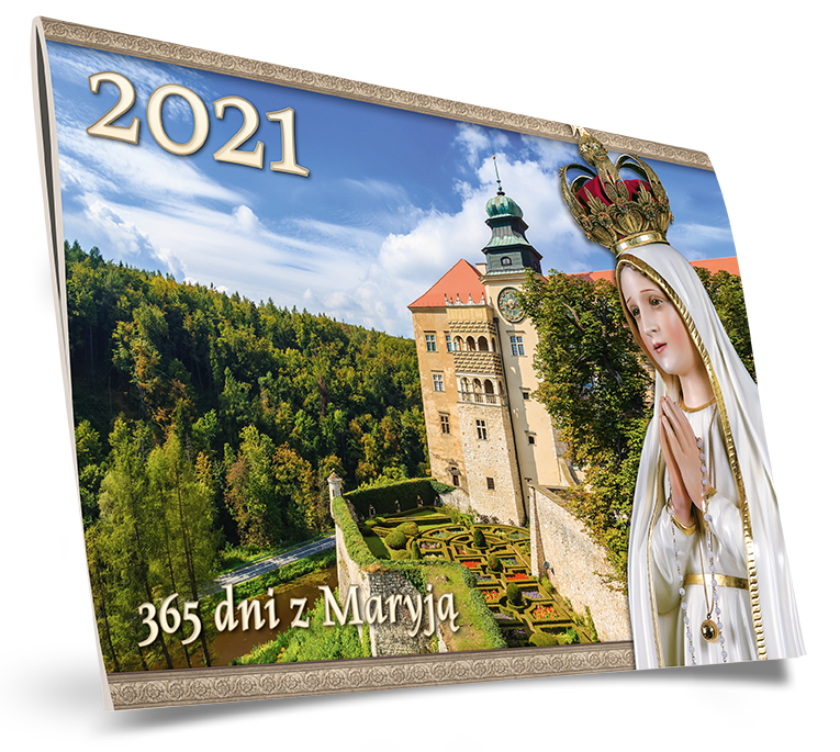 Na każdej stronie naszego Maryjnego kalendarza „365 dni z Maryją” znajduje się wizerunek Matki Bożej Fatimskiej na tle najpiękniejszych polskich krajobrazów.